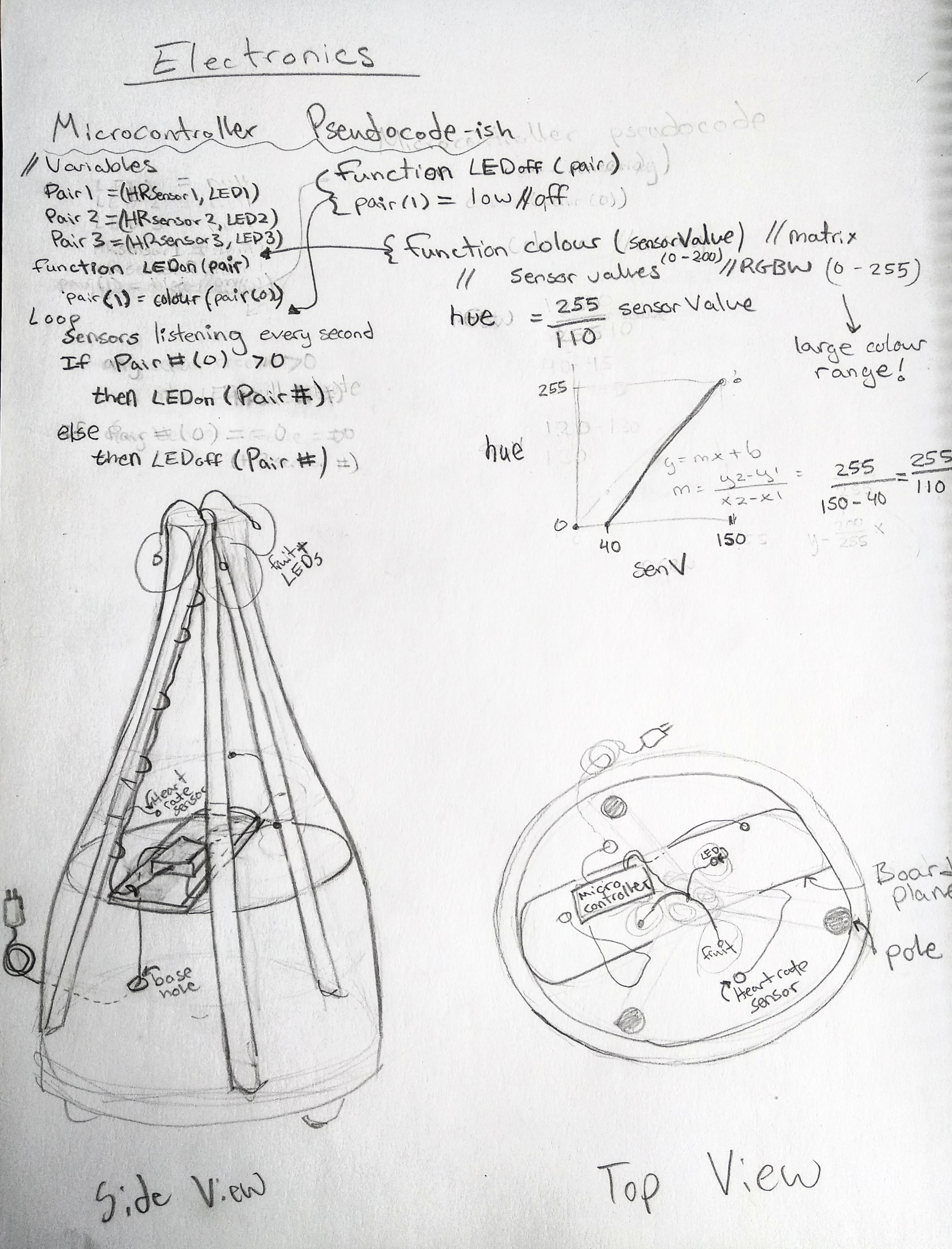 People come up to the tree and put their hand on the bark on one of 3 visible spots where there is a hidden heartbeat sensor. There are ‘fruits’ hanging above each sensor which glow in colour and intensity in the same rhythm as the person’s heartbeat. The texture of the tree will be hard and bark-like, so we encourage people and especially children to touch and feel it!
