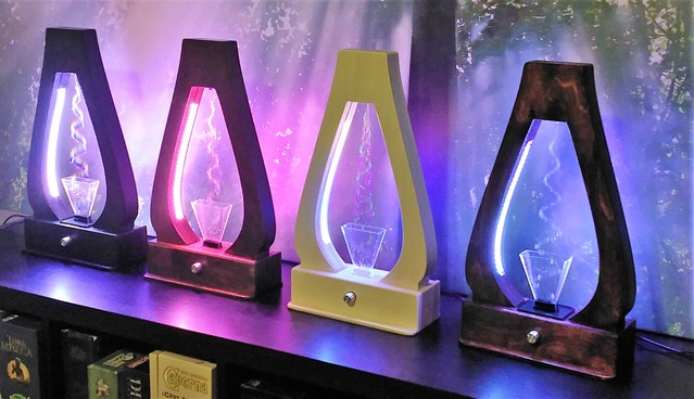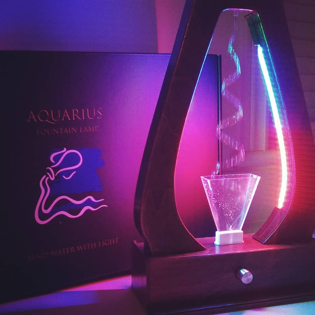 Aquarius is a successfully crowdfunded (Kickstarter!) stroboscopic fountain lamp that creates visually impossible and mesmerizing displays of water. Watch as streams of water freeze in mid-air, rise upwards against gravity, change directions sporadically, duplicate itself into many streams, change colors like a chameleon, and even simulate natural phenomena such as Volcanic Lightning and the Northern Lights. Aquarius is a full-on Maker’s demonstration of woodworking (CNC and handwork), injection molded plastic, PCB design, FDM 3D printing, Arduino programming, metalcrafting, and most importantly, creative tinkering.