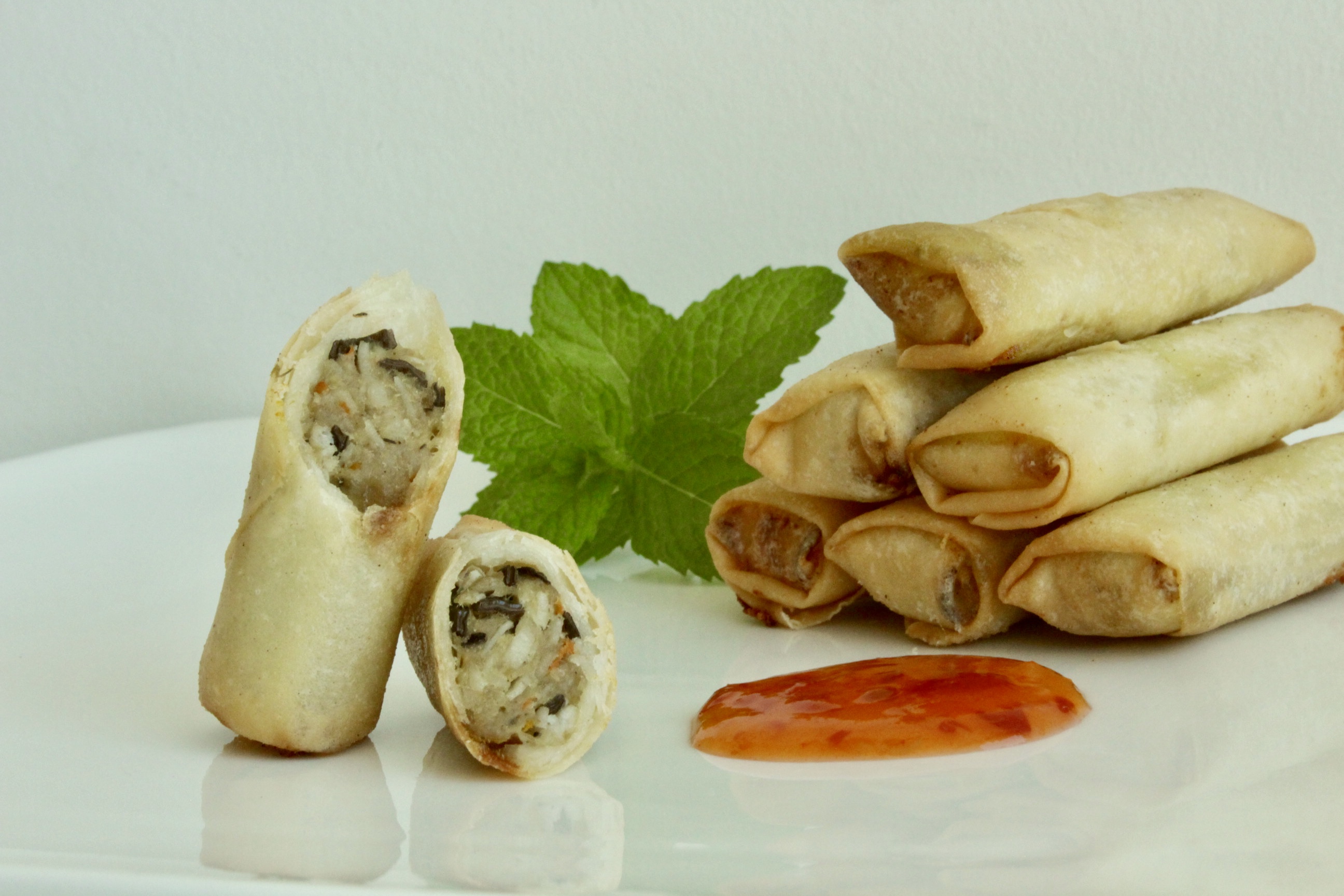 2. Saigon Rôllies (egg roll wrappers, pork, black fungus, taro, fish sauce) dip in Sweet & Spicy Sauce