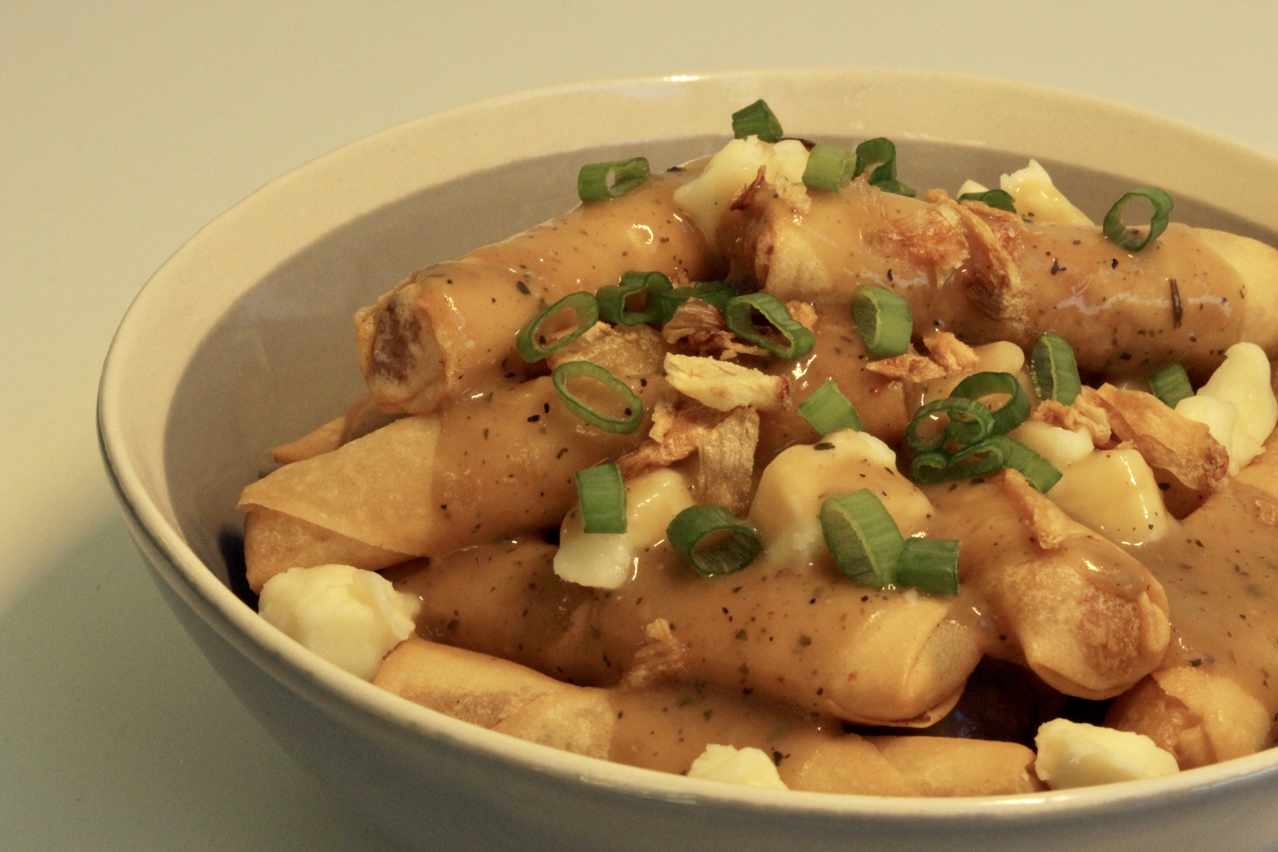 1. Rôllies Poutine (egg roll wrappers, potato, green onion, Vietnamese Pho beef gravy, cheese curd)