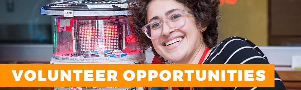 We’re inviting you to upgrade your Festival experience at Toronto Reference Library this Saturday & Sunday (Aug 1st/2nd) by spending a couple of hours helping out on our team – from assisting attendees in drop-in workshops, to guiding crowds, to finding lost robots – there’s always something to be done at the Festival and the more hands on deck, the better!